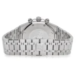 This replica is paired with a stainless steel bracelet. which seamlessly integrates with the case. offering a luxurious and comfortable fit. The bracelet’s combination of polished and brushed links adds a refined touch. while the folding clasp ensures a secure and adjustable fit. completing the overall design with elegance.
